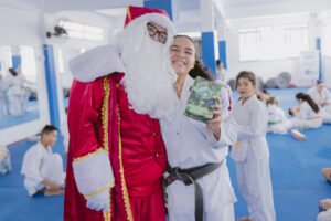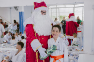 At the end of the year, we were at the Shotokan Academy delivering food baskets, toys, and, above all, gestures of care to the students of the Traditional Karate-Dô Sport and Citizenship Project.
